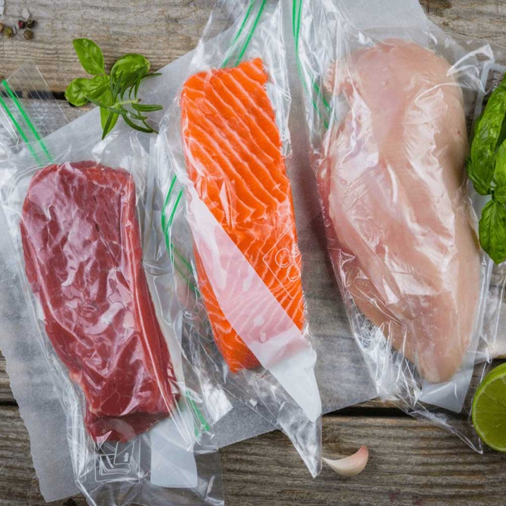 Bevaring och färskhet: Våra vakuumpåsar och flexibla förpackningar hjälper till att bevara färskheten, smaken och näringsvärdet hos kött och fisk genom att skydda mot luft och fukt.